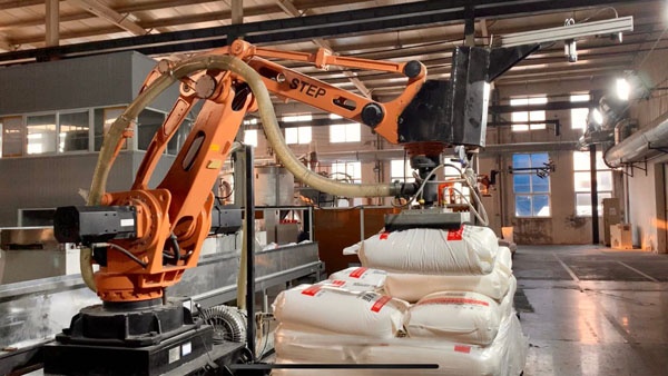 防排水板智能拆垛上料裝備。該設(shè)備有針對性地設(shè)計了防排水板自動拆垛上料系統(tǒng)的軟硬件組成,尤其是機(jī)器視覺、電控和機(jī)器人方面,完成了系統(tǒng)的部署及應(yīng)用。在機(jī)器視覺識別精準(zhǔn)性方面,料袋中心的平均定位誤差不超過2.5cm。在運(yùn)行速度方面,袋料的平均拆垛上料時間在50秒以內(nèi)。